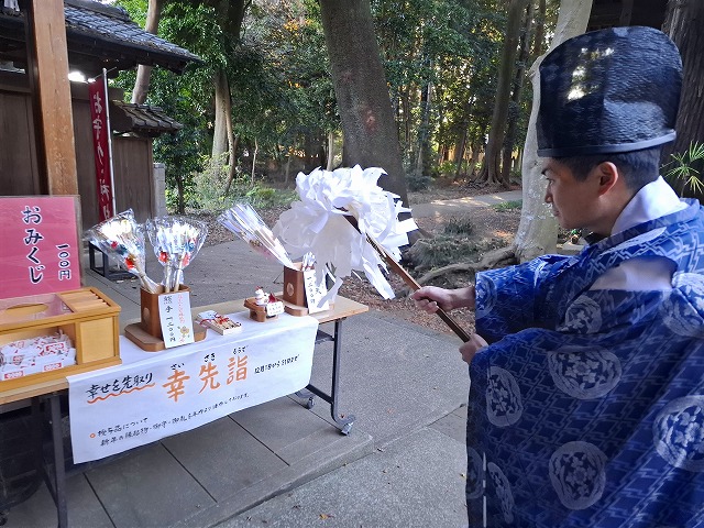 初詣は授与所の混雑が予想されますので、ぜひ、幸先よく新年を迎えられますように「幸先詣」として福を先取りし、ごゆっくりと初詣にいらしていただければ幸いです。